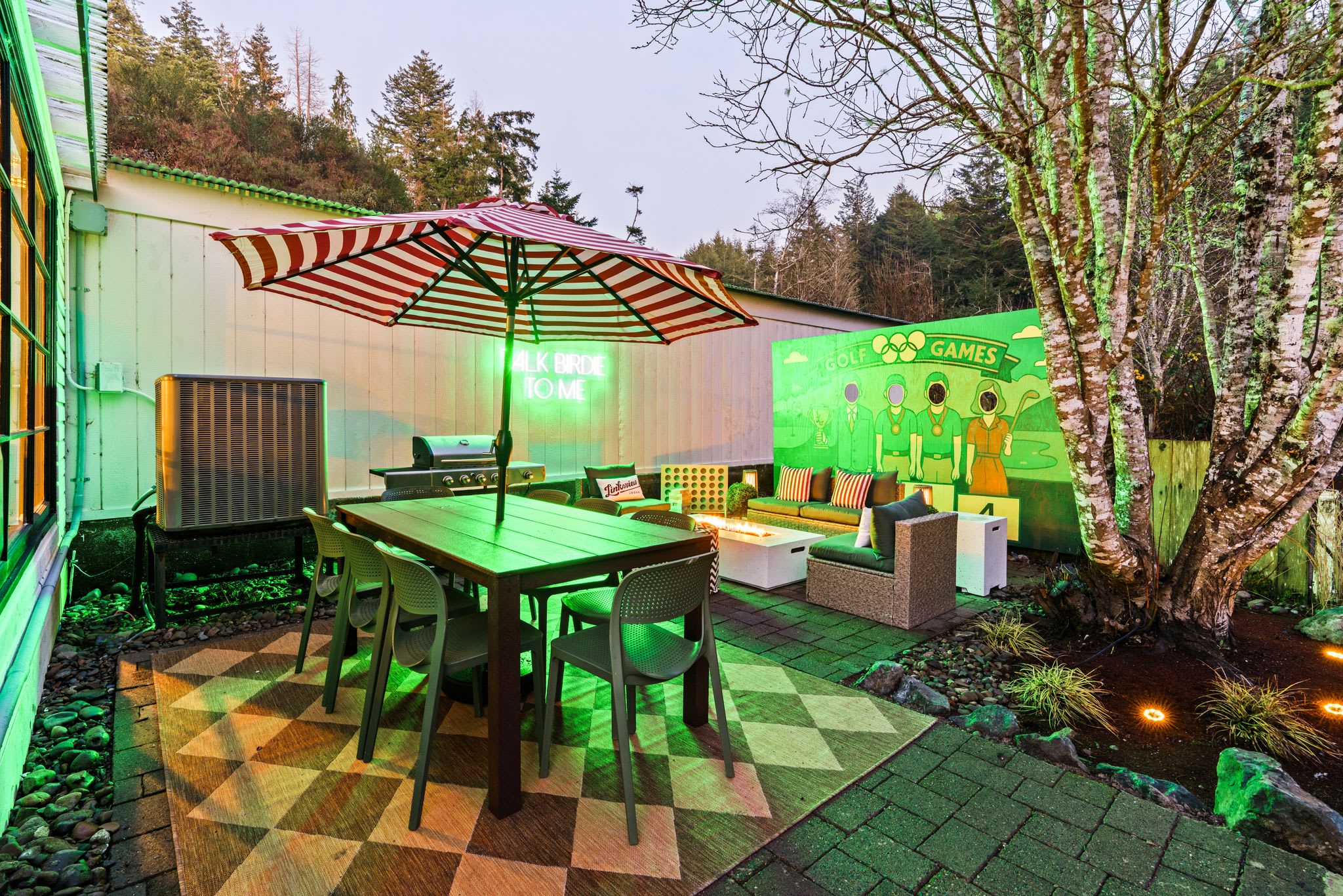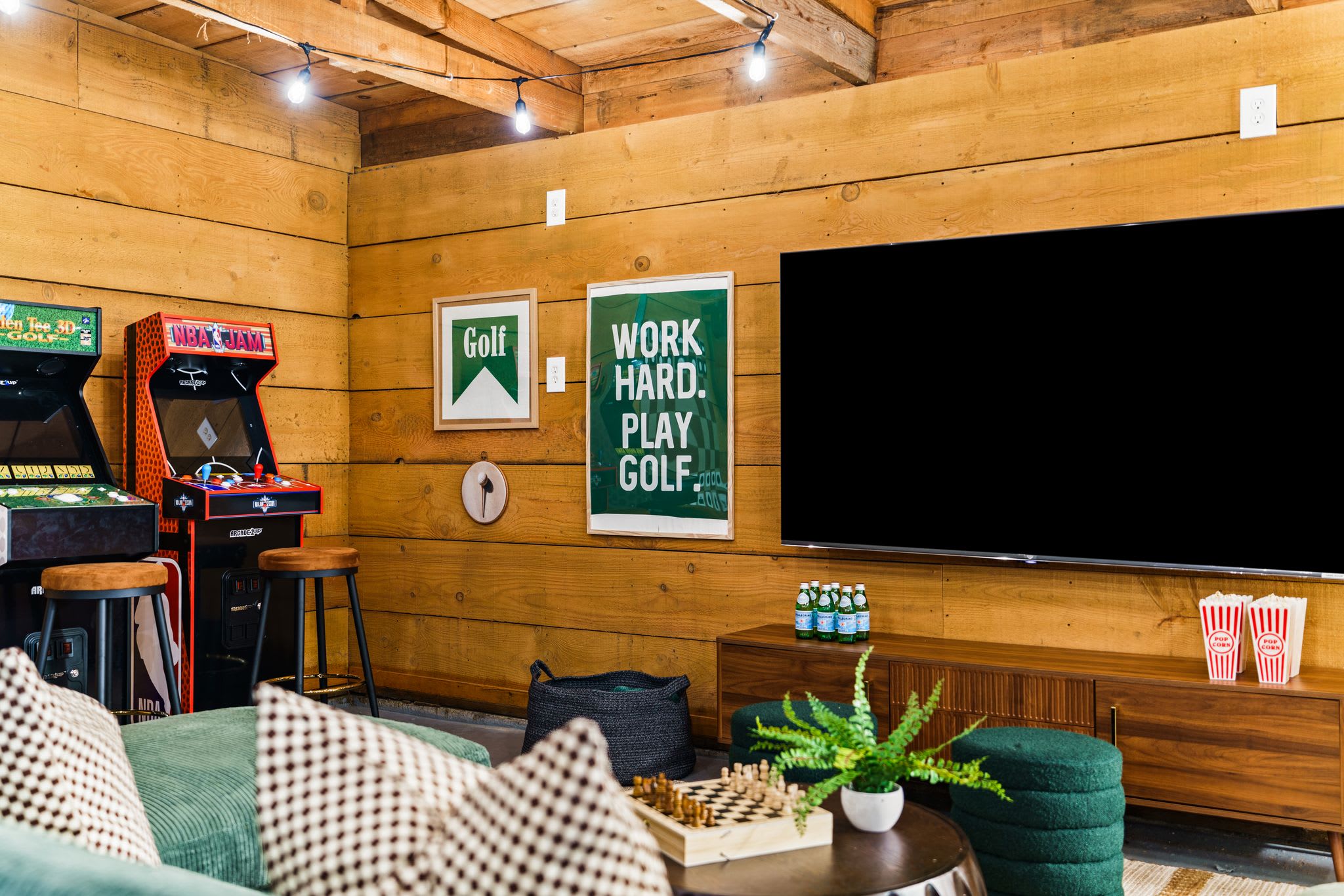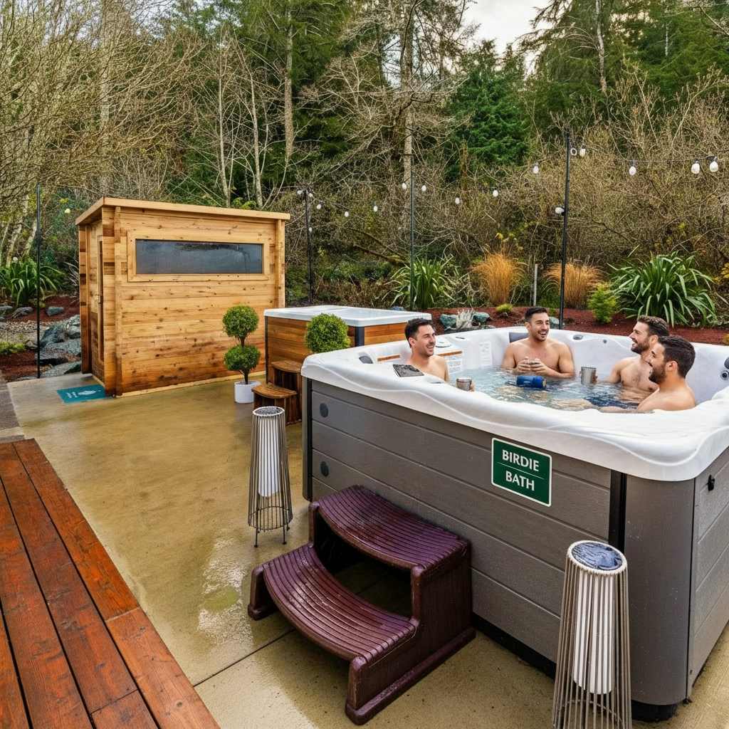 🏌️♂️🔥 Welcome to Linksview Lodge, where golf vibes meet ultimate relaxation. This 4-bed, 4-bath retreat is built for groups who love to play and unwind. Enjoy the sauna, hot tub, and cold plunge, then gather by the fire pit or outdoor dining area. Inside, kick back in the game room, indoor bar, and sports-bar-style hangout. The golf simulator (coming soon) and putting green make this the perfect getaway for golf trips or friend getaways. ⛳✨