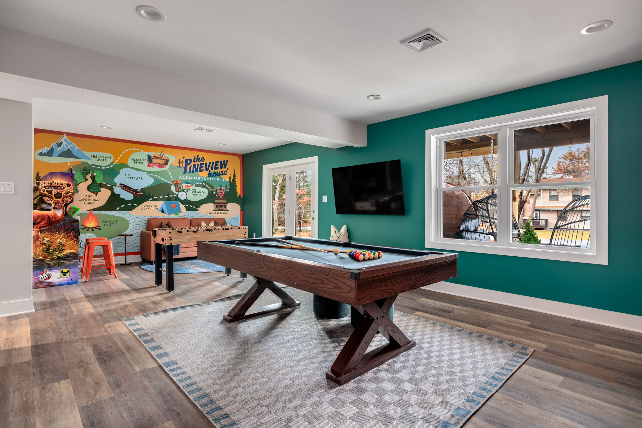 🌲🏡 Welcome to The Pineview House, your cozy mountain escape in Albrightsville, PA. This spacious three-level retreat is perfect for families and groups looking to chill, reconnect, and make core memories. ✨❤️ Warm up by the firepit 🔥, cook up a feast in the modern kitchen 🍳, or take over the game room for some friendly competition 🎮🎱. Step out onto the deck for fresh mountain air and total peace vibes 🌿🌄. Close to lakes, trails, and all the top Pocono must-dos.