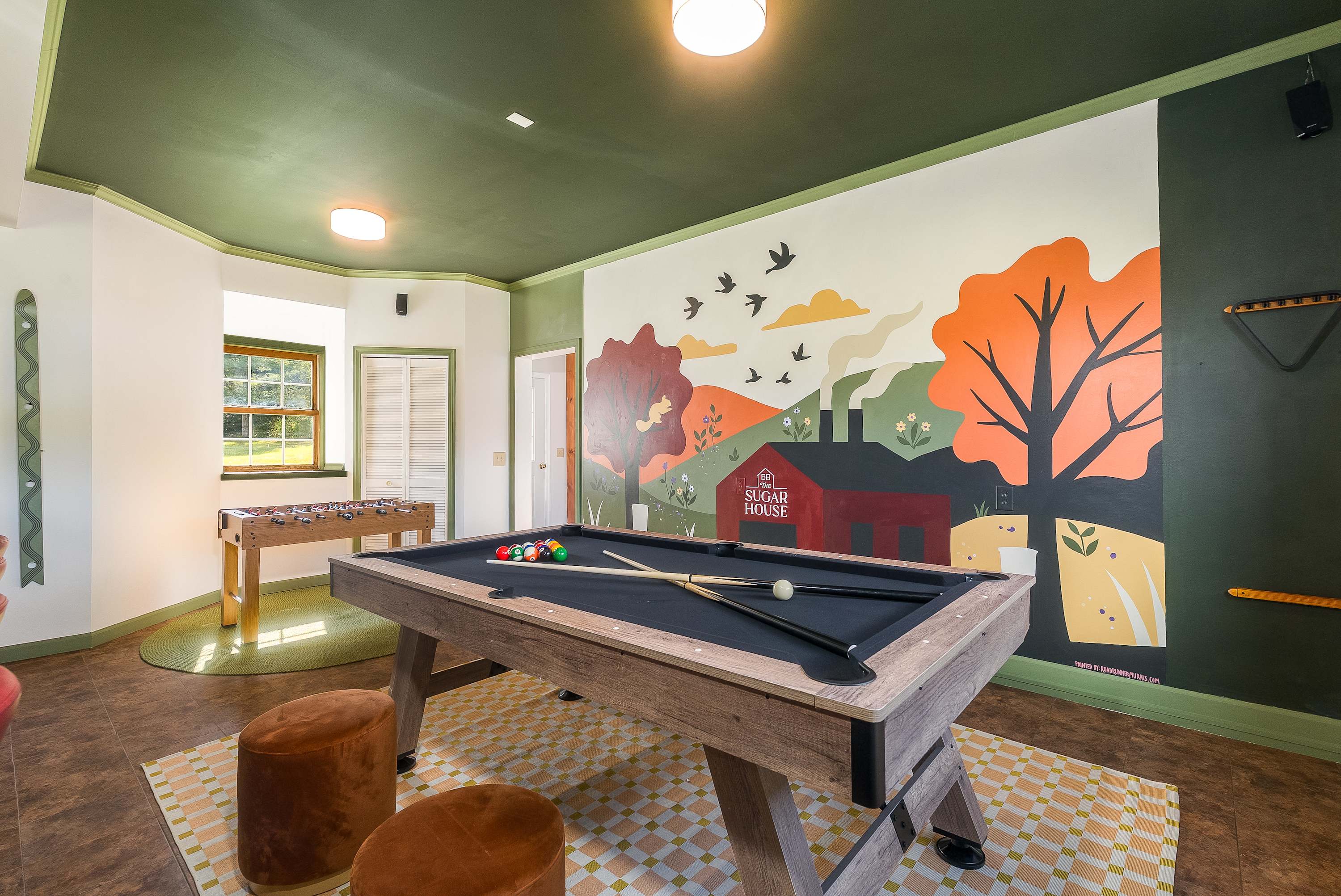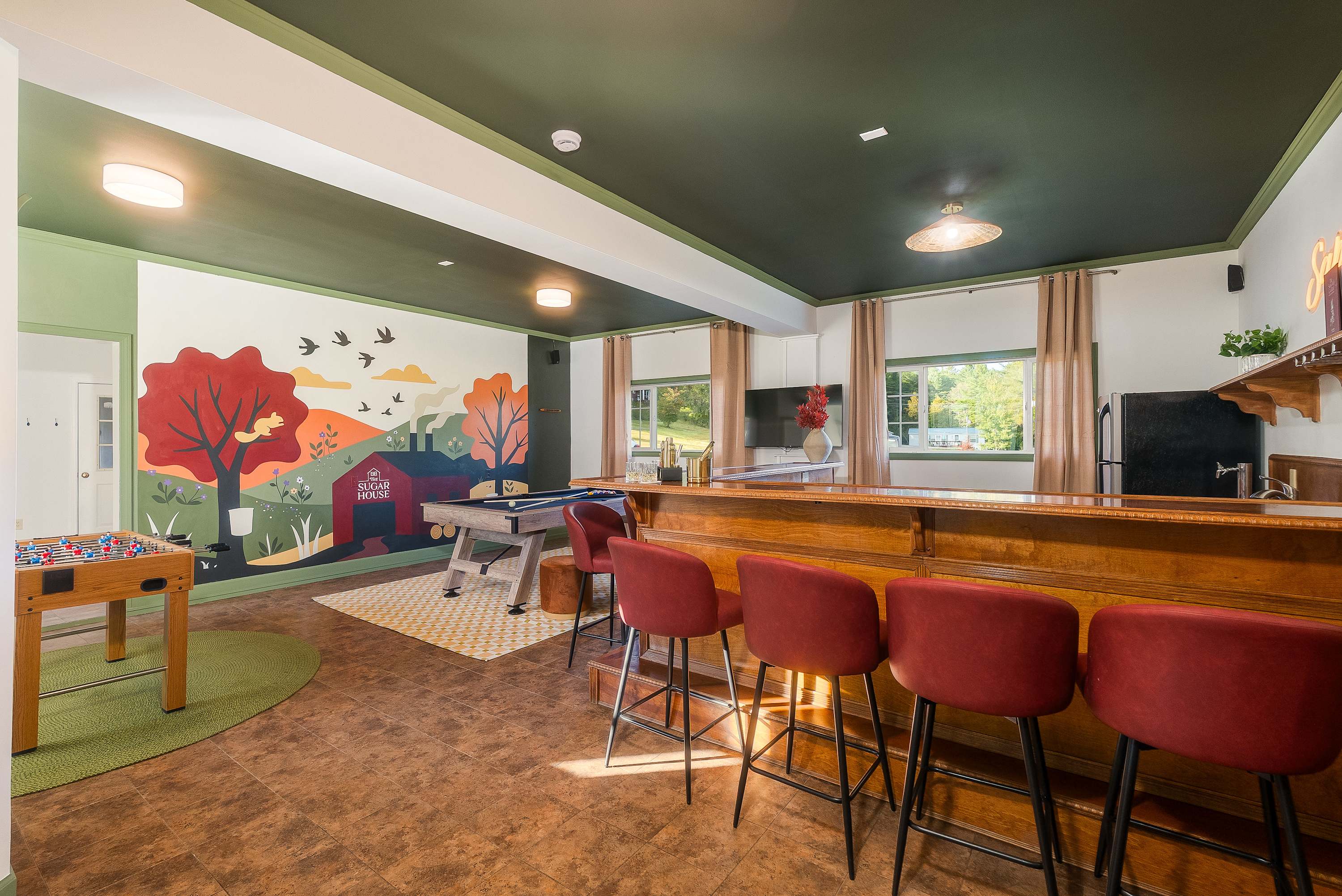 The lower-level game room is a favorite hangout spot, offering fun for kids and adults alike. Step outside to take in the crisp Vermont air, unwind on the deck, or simply enjoy the peaceful surroundings. For those eager to explore, The Sugar House is just a short drive from scenic trails, local attractions, and everything that makes central Vermont special. At The Sugar House, every detail is designed to make you feel at home while giving you the perfect place to slow down, connect, and create lasting memories.