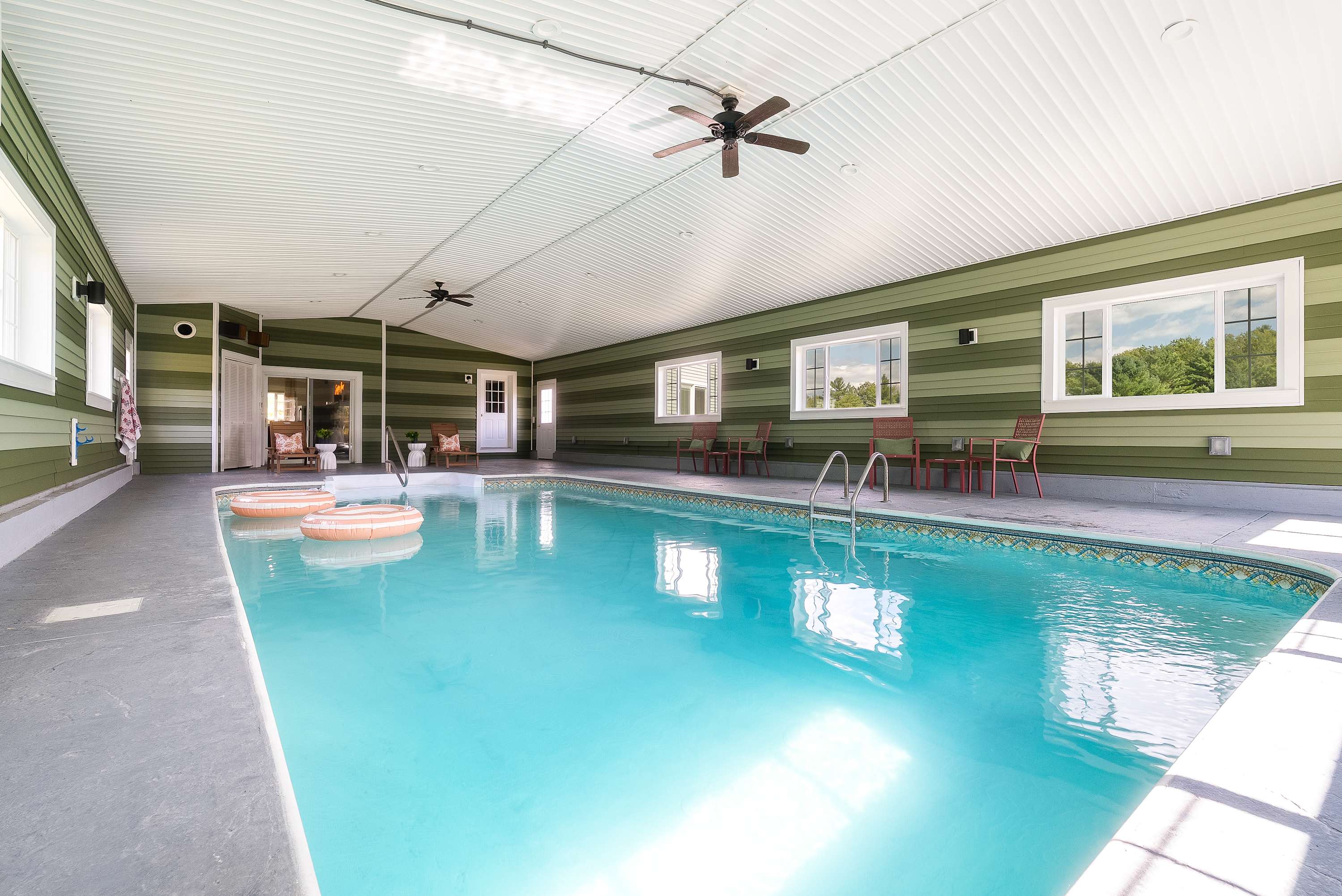 Set on nine acres, this playful getaway mixes New England charm with plenty of ways to relax and have fun. After exploring the hills or nearby towns, dive into the indoor pool, warm up in the sauna, soak in the hot tub, or gather around the fire pit for late-night stories. Every season brings new adventures, and this home makes the perfect base for them all.