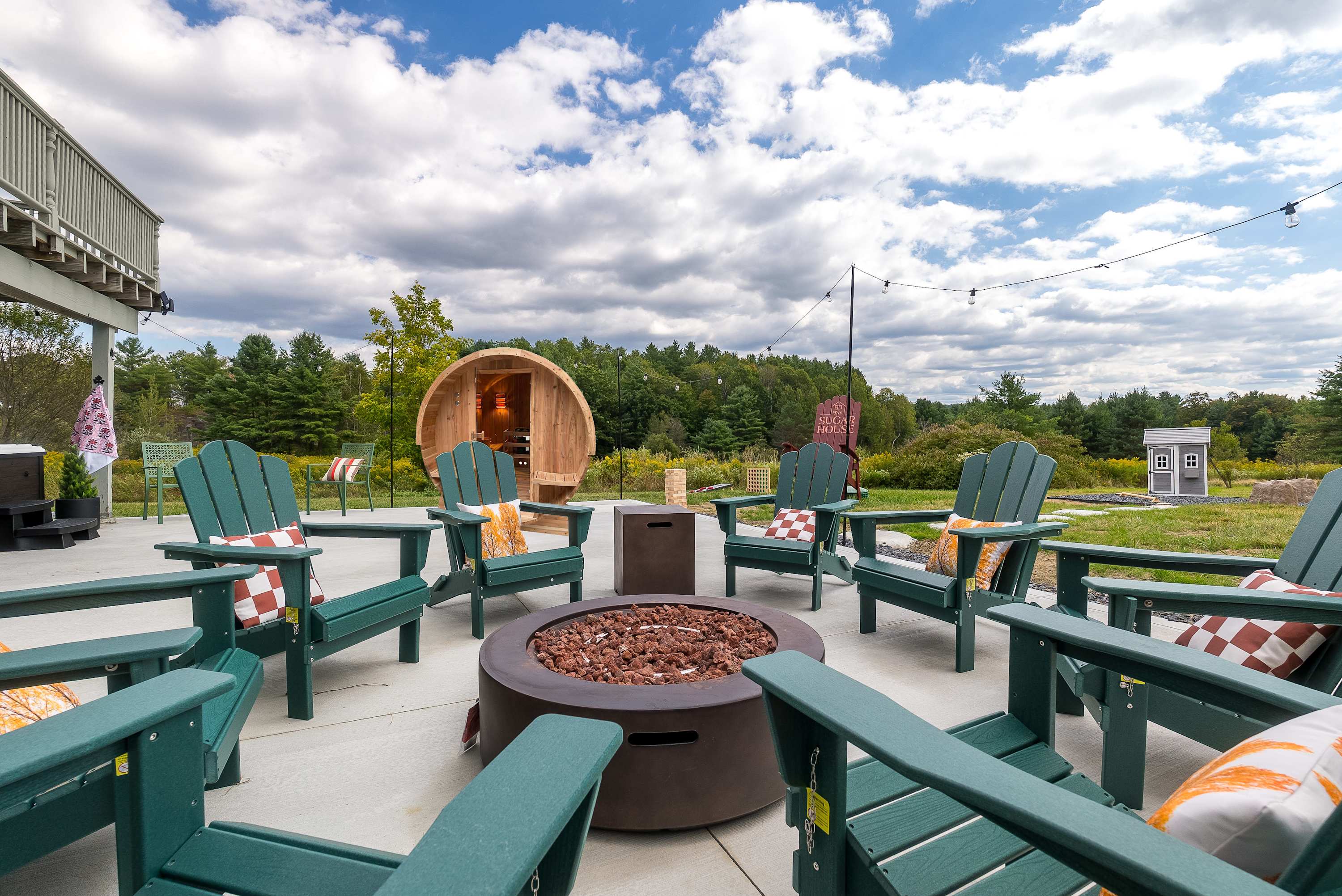 Outdoor Fire Pit: Gather under the stars and enjoy cozy conversations around the outdoor seating area and fire pit.